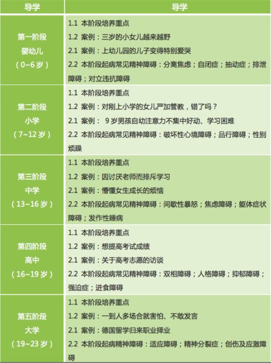 我們怎么學(xué)習(xí)? 化整為零,用時間見證成長。 每節(jié)30分鐘 課程共12節(jié),每個主題2節(jié)課。 規(guī)律與異常,科學(xué)講解 講解兒童青少年的成長特點 及參照DSM-5的精神異常問題 讓你對孩子,全面了解 每單元2個案例,專家拆解 以真實案例講解知識 以真實咨詢呈現(xiàn)方法 專家陪你學(xué)親子 課程設(shè)計 根據(jù)孩子的成長歷程,本課程將分五個年齡段:0到6歲、小學(xué)、初中、高中和大學(xué)進行。 從“生物-心理-社會”三個維度進行講解,從全面的角度了解孩子的成長及其會遇到的問題。并回答如下心理咨詢師及來訪者都關(guān)心的問題:
